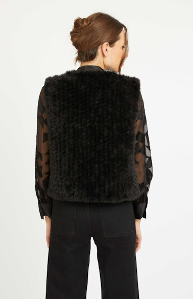 The Nadia Vest adds a touch of luxe texture to any outfit. Crafted from plush faux fur with a soft, shaggy finish, this cropped, sleeveless vest offers both warmth and style. Its open-front design and relaxed fit make it the perfect layering piece, effortlessly elevating blouses, dresses, or knitwear with cozy sophistication.