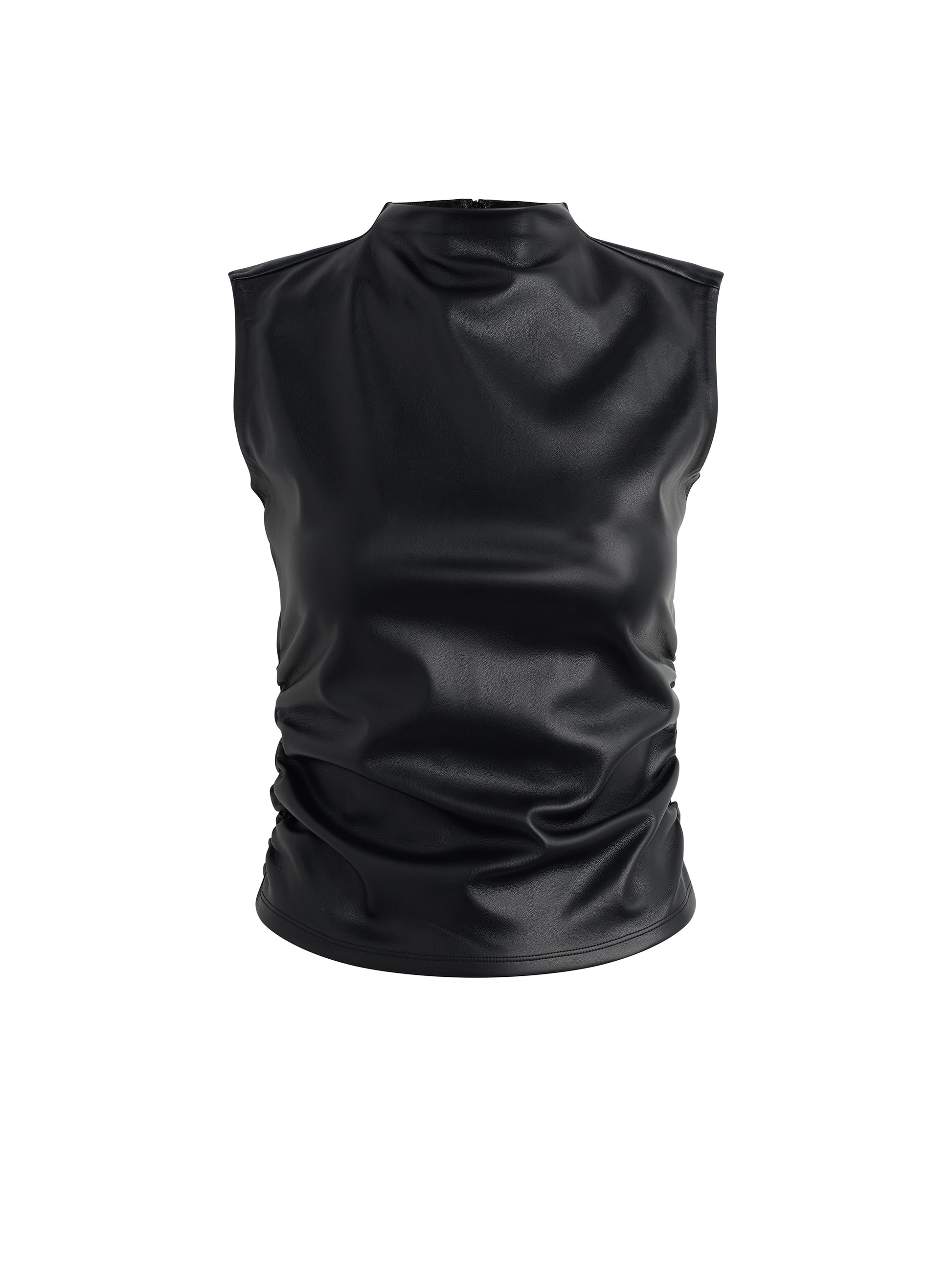 VEGAN LEATHER TOP W/SIDE SEAM RUCHING